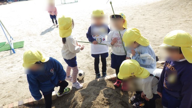 「ここに豆植えたね」「芽が出て嬉しい」「お水あげたほうがいいんじゃない?」と、友達と喜んでいました♪