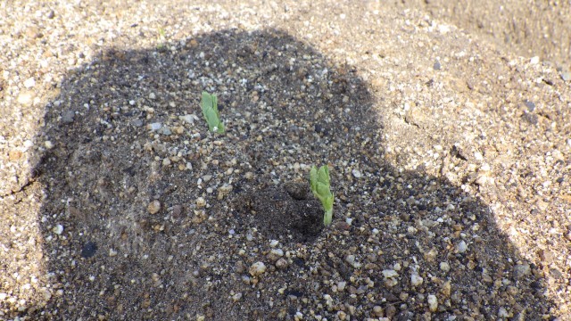 以前畑にスナップエンドウやキヌサヤエンドウの種を植えました。