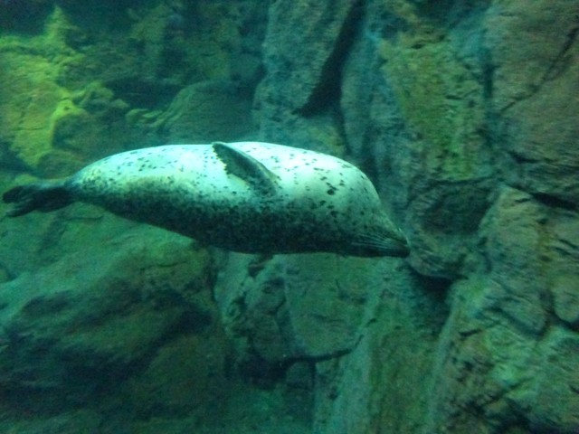 目の前をイルカやアザラシが泳いでいったり、ジンベエザメが大きな口を開けて食事をしていたり…