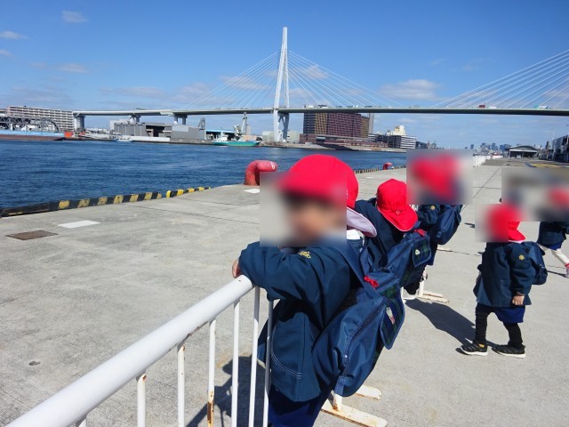 おにぎりを食べた後は、大阪港の広いところで走ったり、年長のお兄さんお姉さんと鬼ごっこをして楽しみました。