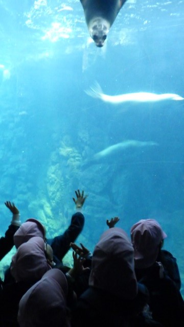 お別れ遠足(海遊館)に行ってきました。昨日から「イルカに会いたいな」「カメっているの?」ととても楽しみにしている様子の子どもたちでした。