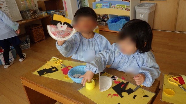 「あかりをつけましょ~」と『うれしいひなまつり』の歌を歌いながらつくりました。
