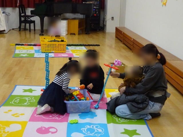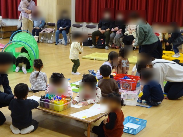 遊戯室で体を動かしたり、ブロックや電車で遊んだり、お絵かきをしたり…