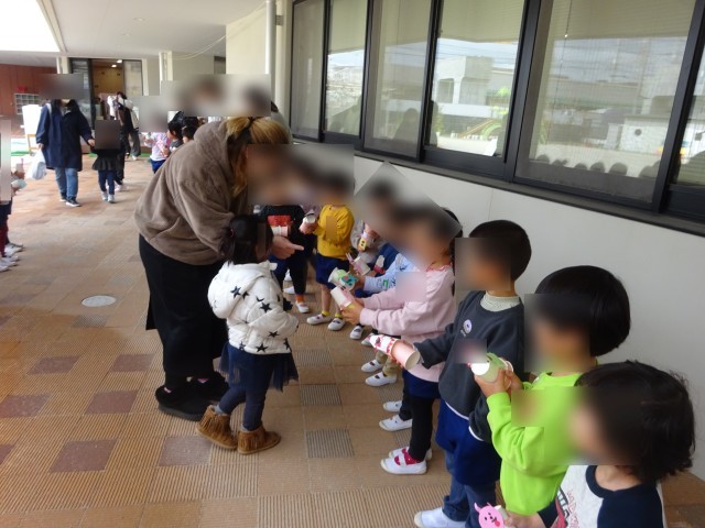 最後には、3・4歳児からプレゼントを渡しました。お家で遊んでみてくださいね♪