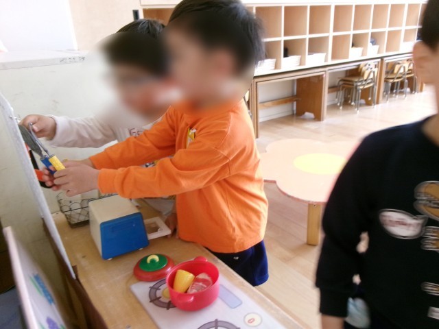 昨日の今日で少し緊張した表情の子どももいましたが、保育室で遊び始めると笑顔も増えてきました。