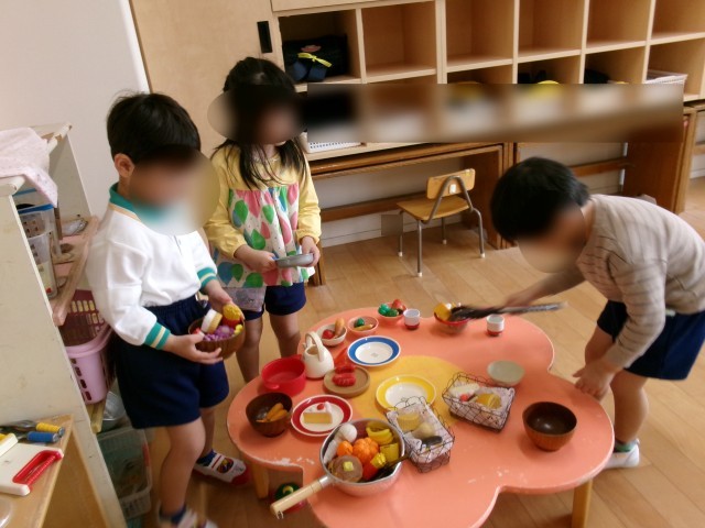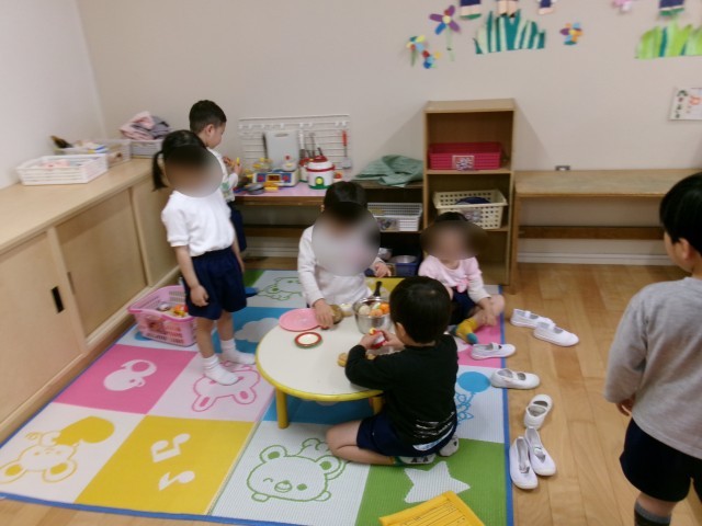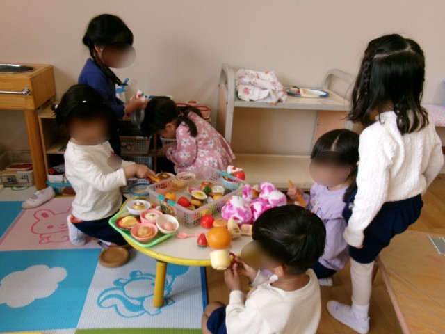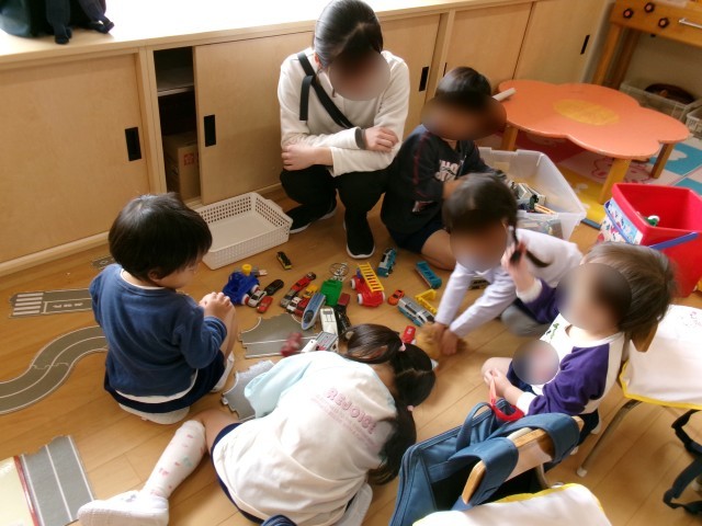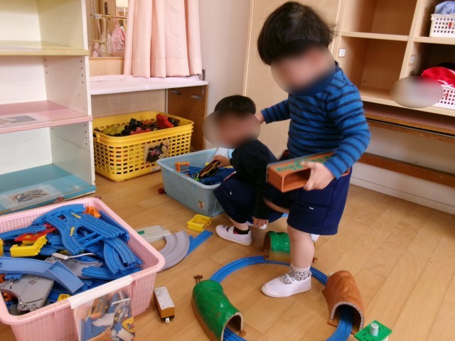 4歳児の保育室では、泣いていた子もすぐに泣き止み、自分の好きな遊びを見つけては楽しそうに過ごす姿が見られていました。
