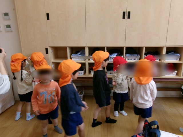 保育室での遊びの後は、みんなで戸外に出ました。