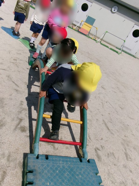 橋を渡ったり、トランポリンを跳んだりなど、体の様々な動きを経験していきます。