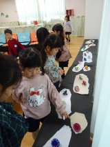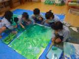 今日はそら組つき組のみんなで製作をしました。 ローラーを使って絵の具を大きい紙に...