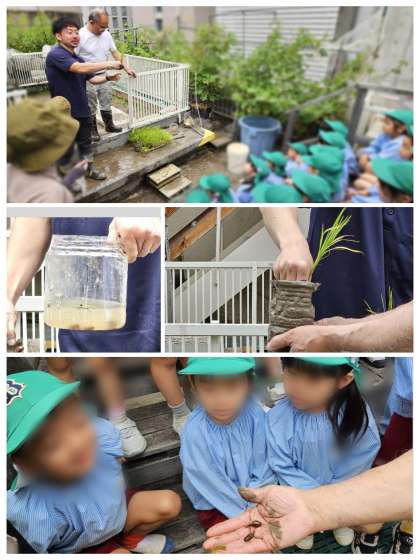 はじめは泥の中に手を入れることに抵抗を感じていた子どももいましたが、やってみると「面白い、もう1回!」とどんどん楽しくなっていき、何回も田植えを楽しみました。田植えも田んぼの生き物との出会いも都会の中ではとても貴重な経験です。これからの田んぼの変化が楽しみです。