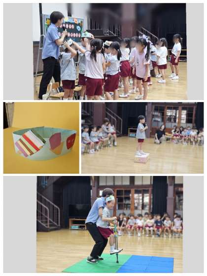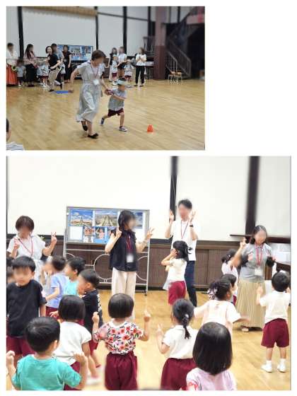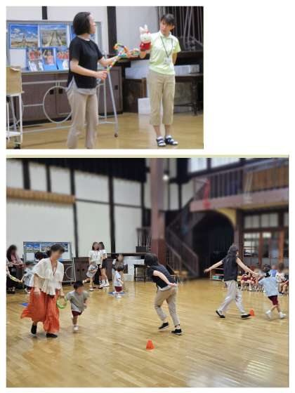 マスコットのあいちゃんからは、子どもたちが夏休み明けに、パリオリンピックの話で盛りあがったので、パリの街と競技の紹介がありました。あいちゃんも玉入れにチャレンジしていましたね!