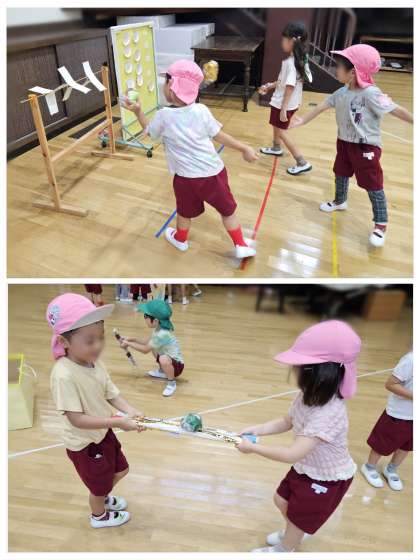 もも組の子どもたちも、みどり組の様子から刺激を受けて、どんどん自分で遊び方を考えています。