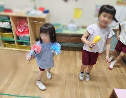 曲に合わせて体を動かしたり、歌ったりすると楽しいですね。みんなとてもいい表情です。客さんになって応援する姿もたくさん見られます。