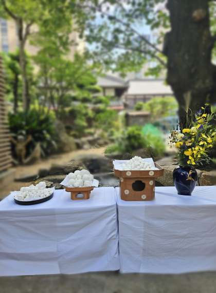 9月17日は中秋の名月。子どもたちがつくった月見団子、ススキや秋の花を飾って「お月見の会」をしました。