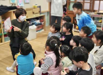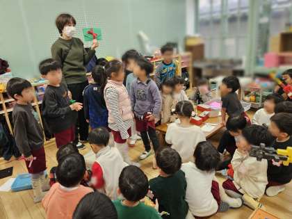 なんとサンタクロースから手紙が届きました。発見したみどり組の子どもたちは大喜び!先生に手紙を読んでもらい「うわぁ、おたのしみ会に来てくれるって!」と、早速小さい組の友達に知らせに行っていました。