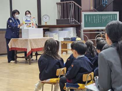終業式の後、引き続き、東警察署の方から交通安全指導がありました。