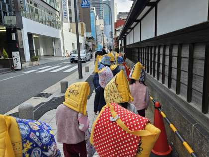 今年は阪神淡路大震災発生から30年です。園児対象に地震の避難訓練を実施しました。一旦園庭に集合した後2次避難場所の日本生命ビルへ避難しました。指示をよく聞き落ち着いて命を守る行動することができました。