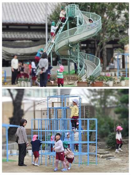 寒さが緩み、元気いっぱいに好きな遊びを楽しんでいました。友達と遊具で基地や家をつくってごっこ遊びをしたり、築山の散策をしたりする姿もよく見られます。みどり組は何度も何度も滑り台を楽しんでいました。クルクルまわりながら滑るのが楽しかったですね。大好きなことを友達と楽しみ、ほっこり穏やかな時間が流れていました。