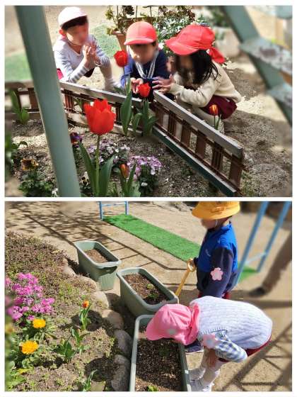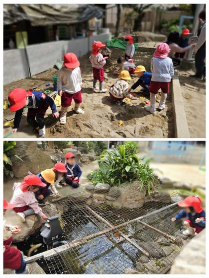 室内や園庭で好きなことを見つけて友達と楽しんでいます。