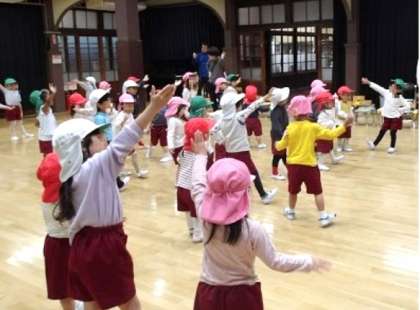 いろいろなクラスの友達とふれあいながらダンスをしました。みんなで体を動かすととても楽しいですね。