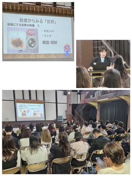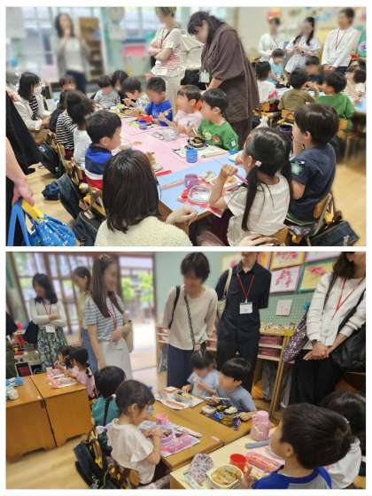 5月30日、食に関する講話・弁当参観を行いました。講師に開平小学校栄養教諭の先生をお招きし「給食からみる『世界』と『和食』」いう演題で食の大切さについてお話をお聞きしました。現在、大阪で開催されている万博の8つのテーマ事業の1つ「いのちをつむぐ」にふれながら、小学校の給食からみた世界の食文化や和食の特徴などを通して「食」の大切さを教わりました。給食でいろいろな国の料理を食ことはその国の食文化を知る機会にもなっていること、子どもたちが美味しく食べやすいように調味料の工夫をしていること、味覚が発達する幼児は焦らず子どもに合わせていろいろな味にふれていくとよいことなど、詳しく丁寧に教えてくださいました。先生は沢山の感想や質問にも終始笑顔で答えてくださっていました。家庭での調理や食事に大変参考になる講演会でした。