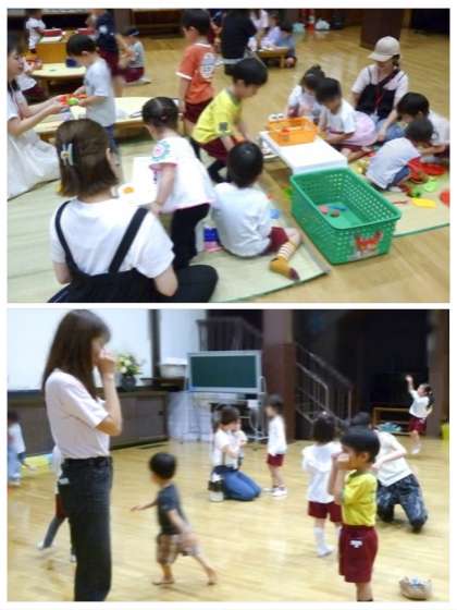 5月に引き続き、6月12日のあいあいらんどにはたくさんのお友達が来てくれました。外はあいにくの雨でしたが、優しいみどり組が遊戯室で一緒に遊んでくれました。どんな遊びをしたら喜んでくれるかな?と話し合って遊び場を決めました。いろいろな遊びの準備も自分たちでしてくれたそうです。
