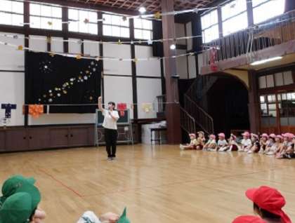 この日は星がいっぱいの遊戯室をみんなで見に行き、集会をしました。