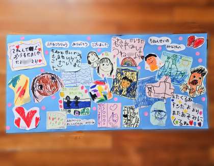 開平小学校の5年生とのプール交流がとても楽しかったみどり組の子どもたち。一人一人が気持ちを込めてお礼の手紙をかきました。楽しかった交流の時のことや自分の気持ちを一生懸命に絵や文字でかきました。5年生の優しさにふれ、お兄さんお姉さんとのふれあいを楽しめたプール交流だったことが伝わってきました。