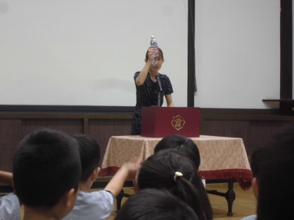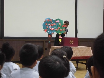 園長先生からは、考えたり工夫したりして楽しく遊んだことのお話や子どもたちがつくったりかいたりした作品の紹介がありました。夏休み中、みんなが健康に過ごせるように守ってほしいこと、がんばってほしいことの話もありました。