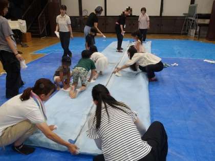 楽しかったプール遊びが終わり、本日は保護者のご協力のもとプールの片付けをしました。