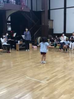 5月は、縄跳び・だるまさんがころんだ・けんけんぱ等、披露していました。友達が作ってくれた素敵な「冠」をかぶって、自信をもって披露していました。