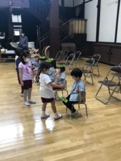 毎月誕生会では、誕生児は友達が作ってくれた手作りの「冠」をもらいます。そして、誕生児それぞれが、自分の好きな遊びを披露します。