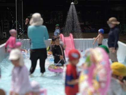 水の冷たさがとっても心地よく、足を伸ばしてみたり、寝そべってみたり、頭からシャワーにかかったり、笑顔いっぱいでした。