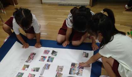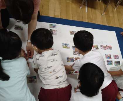 もも組の子どもたちも、「しぜんまっぷ」づくりのお手伝い。