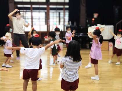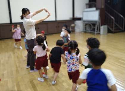 頭や肩に乗せてみたり、先生の手と手の間にエイ!と投げてみたり、カゴに入れることにもチャレンジしています。これからもいろいろなアイデアがでてきそうです。