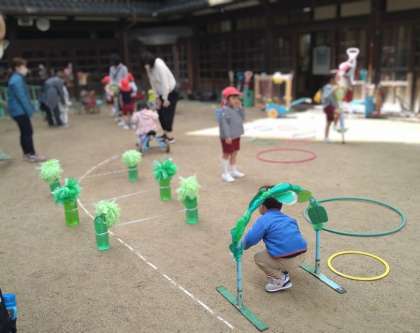 25日、小さいお友達が幼稚園に遊びに来てくれました。何度も幼稚園に遊びに来てくれているお友達もはじめてのお友達も、玉入れをしたり、サーキットをしたり、楽しく遊んでいました。