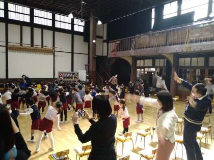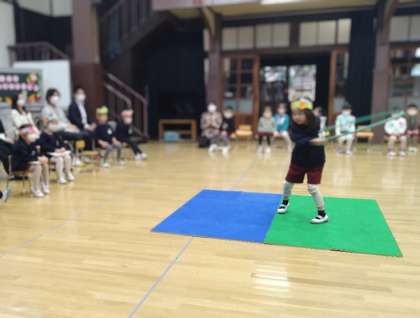 誕生児の子どもたちは、フープまわしや、ホッピング、ダンスや縄遊び、ボール遊びなど、大好きな遊びを披露し、たくさんの拍手をもらっていました。ディズニー体操はみんなで楽しく!大好きな遊びの一つになりそうです。