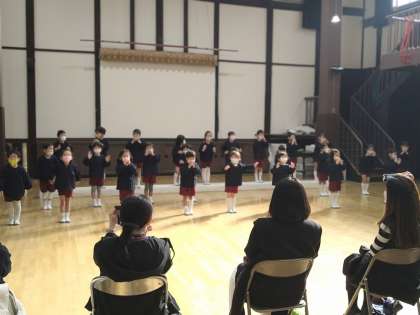 みどり組の子どもたちには、大好きな歌がたくさんあります。友達と歌声も気持ちも合わせて大好きな歌を歌い、その姿を保護者の方に見ていただきました。