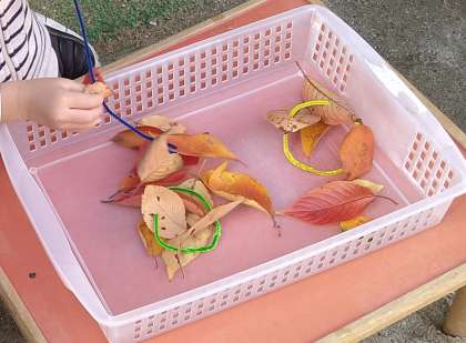 園庭では、見つけた落ち葉にモールを通して遊ぶお友達もいました。今回もとても楽しかったですね。
