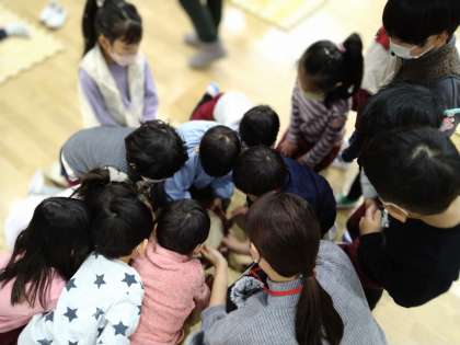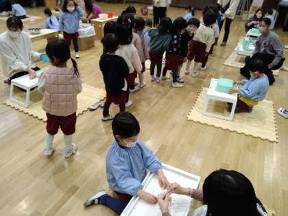 途中からは、(みどり組さんは、どんなことをしてるのかな?)ともも組、あか組の子どもたちが見に来ました。