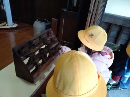 降園時には、保護者の方とも見て帰りました。古くから大切にしている木彫りの十二支の置物を見て、「ね・うし・とら・う・たつ・・」と干支の名前を言いながら指さしていました。今年の干支の卯には赤い紐がまかれています。