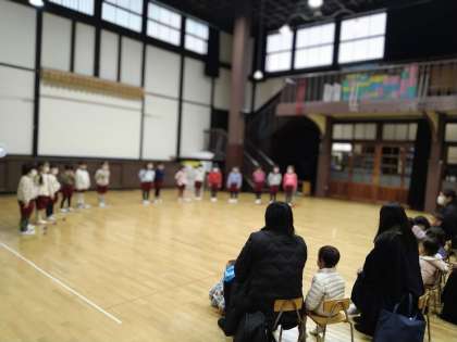 2月のあいあいらんどはには、寒い日にかかわらず沢山のお友達が来てくれました。もも組のお兄さんお姉さんたちが「せいかつはっひょうかい」で披露した歌と楽器遊びを見せてくれました。演奏する前にはカスタネット、スズ、タンブリン等々それぞれの楽器の音を聴かせてくれました。