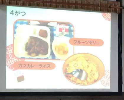 歌や給食クイズ、実物もあり、小学校での給食が楽しみになりました。
