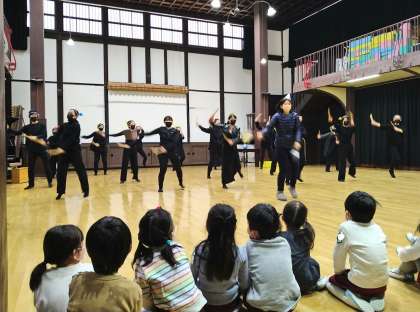 みどり組の保護者の方が担任の先生と一緒に「爽涼鼓舞」を披露!