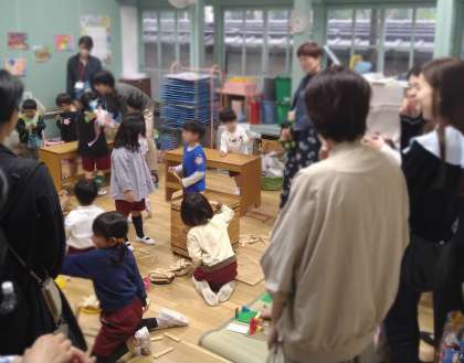 今回保育室では、子どもたちの様子を間近に見ていただくことができました。