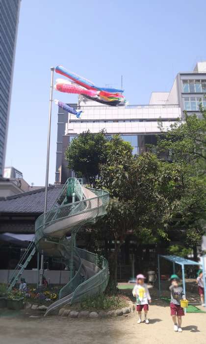 こいのぼりが春風にふかれて、気持ちよさそうに泳いでいます。