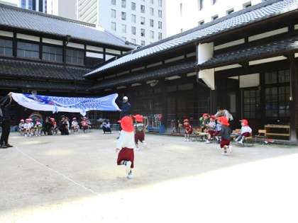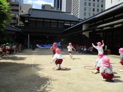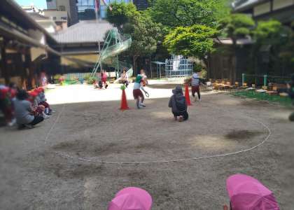みどり組は折り返しリレーに挑戦。カーブも速度を調整して走っていました。勝負は大接戦!みどりチーム、白チームどちらも力を合わせて頑張りました。