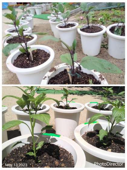 あか組はミニトマト、もも組はナス、みどり組はピーマンを植えました。これから夏に向けてぐんぐん育っていきますように。