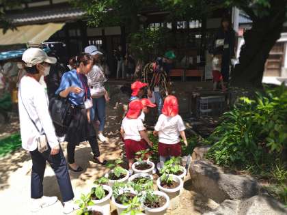 園庭に集まり、みんなで大好きな「どうぶつたいそう」をしました。ウサギやゾウ、ゴリラ・・歌詞やリズムに合わせていろいろなどうぶつになって存分に体を動かしました。ヘビやアヒルの動きも楽しかったですね。