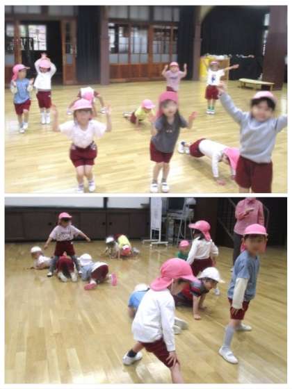 走る、止まる、くぐる、ジャンプするなどいろいろな動きをイメージをわかせながら存分に楽しんでいます。